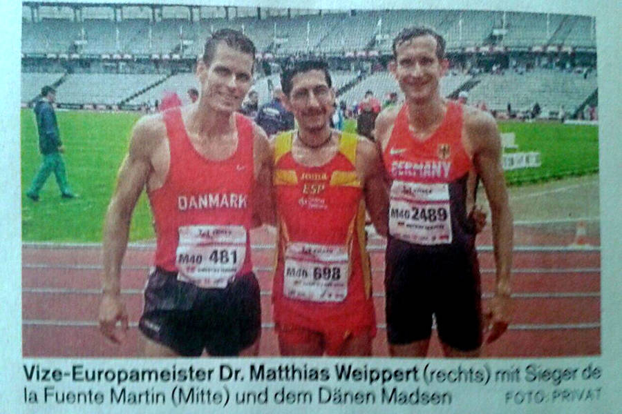 Bei den European Masters Athletics Championships Stadia (EMACS) 2017 in Aarhus/Dänemark erreichte Dr. Matthias Weippert heute über die 10.000m in AK 40 den 2. Rang in neuer Landesrekordzeit von 32:19 min!