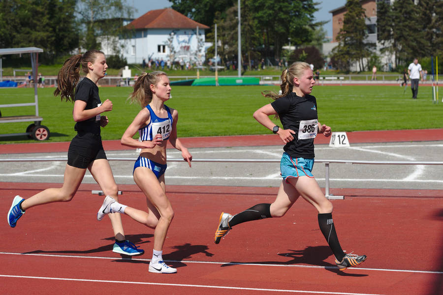 Am Nachmittag folgten die 800 m-Rennen der W12 und M12. Mia und Aliena gehörten mit ihren Vorleistungen zum Favoritenkreis im starken Teilnehmerinnenfeld. Mit deutlichen Verbesserungen ihrer Bestzeiten holten sie die Silbermedaille (Aliena 2:32,23 min) und Bronzemedaille (Mia 2:33,47 min). Filip Schwertfeger und Bjarne Seemann zeigten ebenfalls über 800 m (M12) starke Leistungen. Bjarne konnte nach Fotofinish die Silbermedaille erringen und Filip als 5. überzeugen. Eine Panne in der Zeitmessung verhinderte, dass beide offizielle Bestzeiten erliefen. Lea trat am Nachmittag noch über die 200 m an und erlief sich die Norm für die Norddeutschen Meisterschaften.